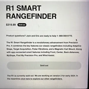 The R1 Smart Rangefinder is a revolutionary advancement from Precision Pro. It combines the key features our classic rangefinders including Adaptive Slope, Target Acquisition, Pulse Vibrations, and a Magnetic Cart Mount. Along with app connected smart features including Front, Center, Back distances, MySlope, Find My Precision Pro, and Wind Assist.