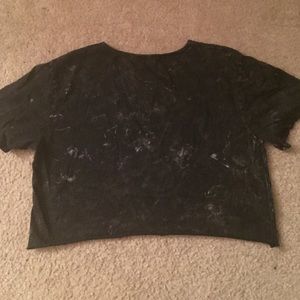 This was originally a men's shirt but I cut it to fit me so it IS A MEDUIM IN MENS. It has a crumple affect look to it. I worn it once or twice. Very cool design
