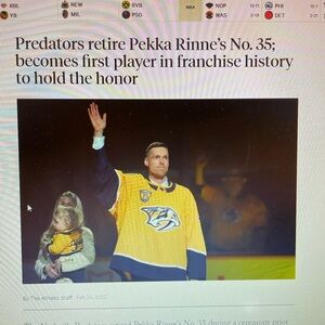 Predators T-shirt NFL Mens Hockey T-shirt XL Pekke Rinne white and yellow NWOT