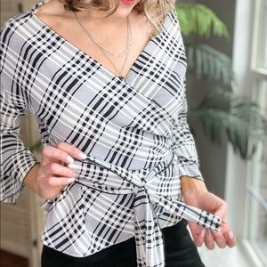 This cute black and ivory plaid blouse will be adorable for any afternoon out or work day! We love the flowing flutter sleeves and classic v-neckline. This will be your new fave all season long. It also features a lightweight feel and cropped style. Pair this blouse with a skirt or pants for a cute outfit!