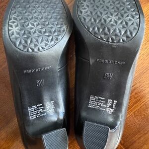 Predictions brand black shiny round toe heels with a small bow. Size 8W.