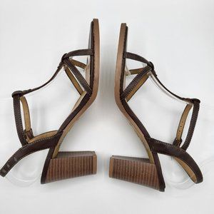 Predictions Brown Strappy Chunky Heel Sandals SZ 7.5