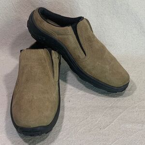 Previously worn; suede uppers; fabric lining; full cushioned removable insoles; rubber outsoles. Shoes are in good condition; some discoloration from wear; soles are in excellent condition. #predictions #bootandshoetraders