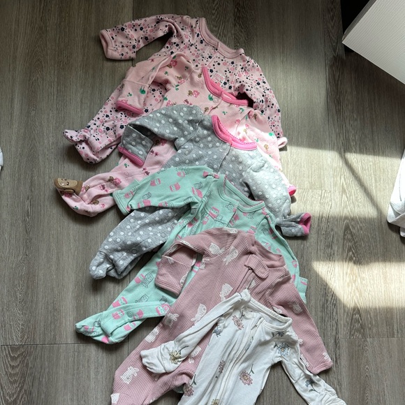 6 premie pj’s, 4 with buttons 2 with two-way zippers. All have the foldover function to create mittens for their hands. Used, but in great condition. Dog friendly home.