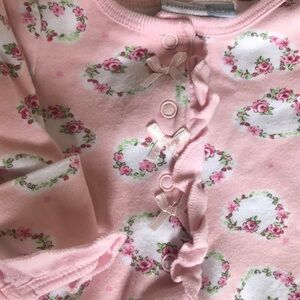 Preemie Pink Swiss Roses Ruffle Baby Sleeper Dress