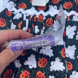 This adorable homemade dress with ghost and pumpkins is for a doll or could be used as a preemie outfit.