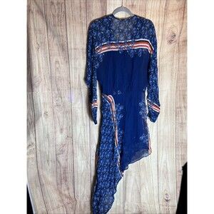 Preen Line Womens Long Sleeve V- Neck High Low Midi Dress Blue Red Small