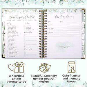 🧿Beautiful Greenery Design - Great for Welcoming A Baby Girl Or Baby Boy: The gender-neutral design with its harmonious colors and leaf paintings, robust ring binder, classic gold corners and a green elastic band make it a lovely journal that will be a joy to flip through for years to come!