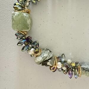 Prehnite Chunky 9" Necklace Crystal Statement Stone Jewelry Bead Green Gold Blue
