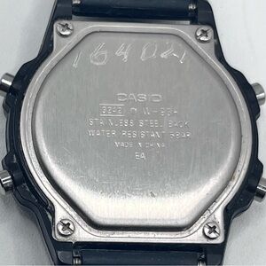 This Casio Men's W93H Multifunction Sport Watch is a vintage two-piece strap timepiece with a black square case and a digital gray dial. It features a 35mm plastic case, quartz movement, water resistance up to 50 meters, and a black plastic band. This rare watch from the Casio Sports collection has a sporty style and is a unique find for watch enthusiasts.