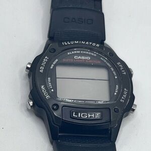 This Casio Men's W93H Multifunction Sport Watch is a vintage two-piece strap timepiece with a black square case and a digital gray dial. It features a 35mm plastic case, quartz movement, water resistance up to 50 meters, and a black plastic band. This rare watch from the Casio Sports collection has a sporty style and is a unique find for watch enthusiasts.