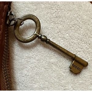 This beautiful FOSSIL handbag is a must-have for any fashion-savvy woman. Made of high-quality brown leather with a patina brass hardware finish, this vintage bag is perfect for both travel and casual occasions. The rectangle shape with a zipper closure is accented by an inner and outer pocket, providing plenty of space for all your essentials.
