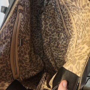 Elevate your style with this elegant black quilted bag from GUESS. Perfect for any occasion, this bag combines fashion and functionality. wear on the straps. small stain on inside pocket. 2 tassles.