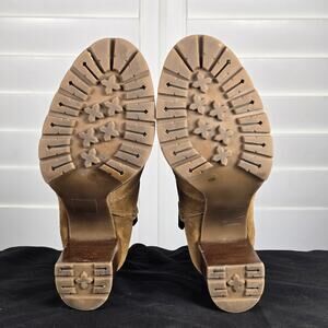 Preloved Tory Burch Sofia Logo Ring High Heel Ankle Suede Leather Booties Brown