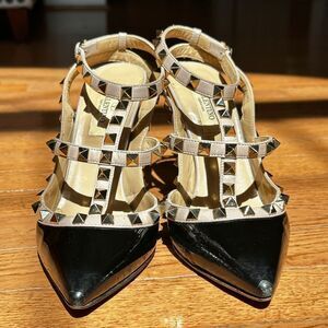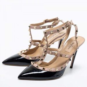 Pre-loved VALENTINO GARAVANI Patent Leather Rockstud Ankle Strap Pumps Size 36