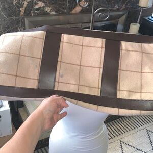 Preloved Window Pane Wool Overnighter Duffle/Tote Plaid Bag by Mark & Graham