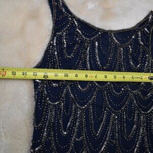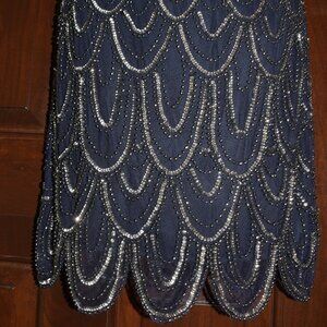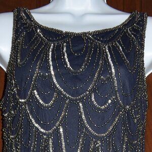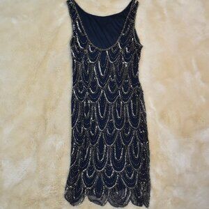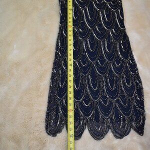 Prelude Beaded Gatsby Cocktail Party Dress Sz 6 Navy Blue Sparkly Party
