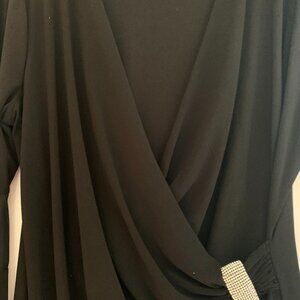 "Prelude" Black Evening Dress - Wrap Top - Embelish at Waist - Sz. Large NWT