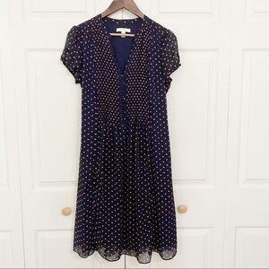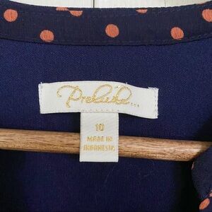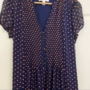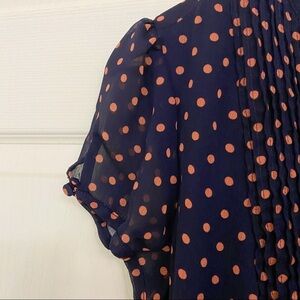 Prelude, Button Top, Pleated Neck, Deep Navy Blue & Pink/Peach, Polka Dot, Belted, Dress. Retro 50s, pinup style. Size 10