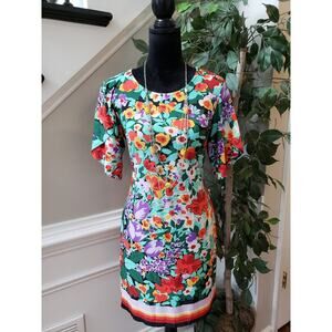 Prelude Dress Womens S Multi Floral Stretch Pockets Short Sleeve Pullover