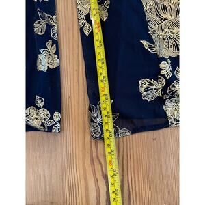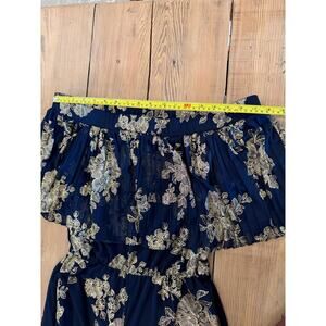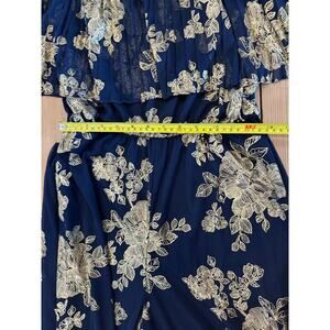 Prelude Navy And Gold Floral Print Off Shoulder Ruffle Jumpsuit Large