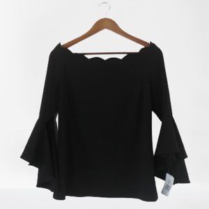 Prelude Prelude Black Scalloped Off-The-Shoulder Top