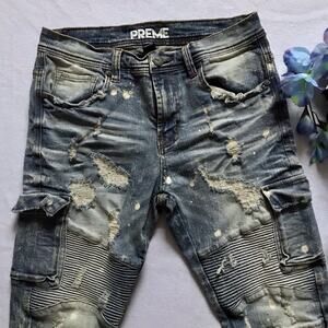 Preme NWOT Light Stone Wash Distressed Skinny Jeans Men 32