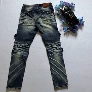 NWOT. Medium wash Distressed Skinny Jeans for Men Size 32. Zipper and button for closure, 5 pockets design, has loops, embroidered orange "Preme" brand on fasteners for style. This brand is known for its unique urban style. Pictures are part of description.