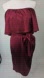 Premier Amour Elegant Strapless Midi Dress wRuffle Overlay Rich Wine Color Sz:12