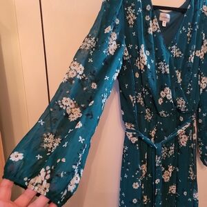 Premier Amour Emerald Green Floral Faux Wrap Maxi Dress with slit - Womens 16