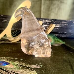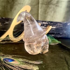 Bring a touch of magic to your space with this premier Brazilian citrine wizard skull carving. Weighing 413 grams and measuring approximately 3″ long by 4″ tall, this A-grade citrine masterpiece is crowned with a meticulously carved wizard’s hat. The front is polished to a flawless mirror finish, enhancing its rich honey-gold hues, while the raw natural base preserves the crystal’s authentic character. Celebrated for its abundance-attracting and mind-clarifying properties, citrine channels joyful, uplifting energy—ideal for meditation, crystal grids, and Feng Shui arrangements. Ethically mined in Minas Gerais’s premier quartz belts, each piece is selected for exceptional clarity and carving precision. Ships securely packaged for safe delivery. Add this enchanting wizard skull to your collection and let its playful elegance and transformative vibration elevate your décor and spiritual practice.