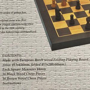 The chess set is hand crafted from European Beech wood Folding Playing Board