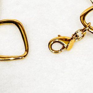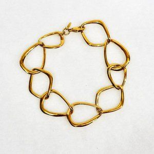 Premier Design gold tone bracelet with large geometric links. High polish gold tone finish in like new condition. Fits larger wrists and measures approximately 7-3/4 inches. Secure lobster closure. Premier Design logo tag attached.
