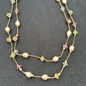Premier Design Gold-tone Necklace w/ pearls ~ beads ~ flowers