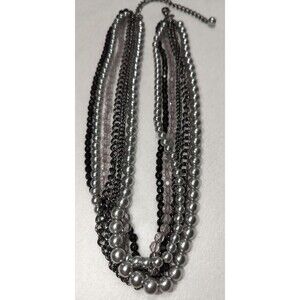 Premier Design Multi-Strand Silver Tone Beads and Gun Metal Chains