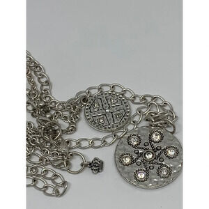 Premier Designs 2-Strand Silver Medallion Necklace. Longest strand measures approximately 27”.