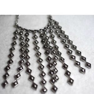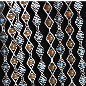 Premier Designs ARIZONA Southwestern Reversible 30" Blue/Brown Bib Necklace Waterfall Silver Tone Etched Lobster Claw Clasp Boho Statement