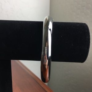 Imitation rhodium plated, oval, 6½" bracelet with spring-hinge.