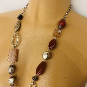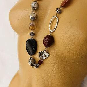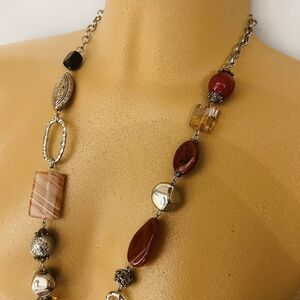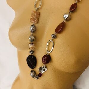 Premier Designs Art Glass Beads Necklace Earth Silver Tone Chunky Beads