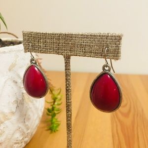 Like new; will be shipped in original packaging. Antiqued brass and a deep red center stone are the perfect subtle color addition to any outfit. Fish hook backs.