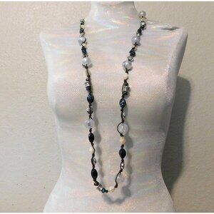 Premier Designs Chambray Necklace Adj Antique Silver Plated Glass Acrylic Beads