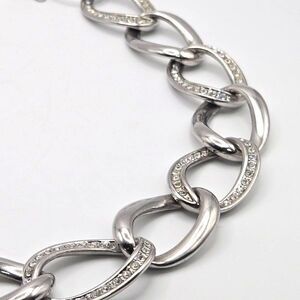 Premier Designs Chunky Silver Tone Large Link Necklace with Rhinestones 16"-18"