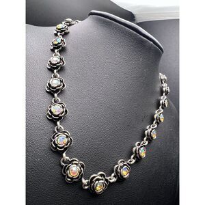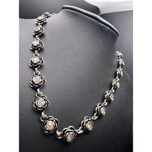 Premier Designs linked flower necklace with aurora borealis crystal centers.