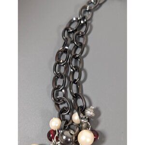 Premier Designs Gunmetal Red Bead Faux Pearl Double Layer Necklace Goth 20"