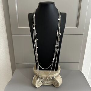 Can be worn as multi strand necklace or two individual necklaces. See photos. Silver tone, good pre-worn condition!