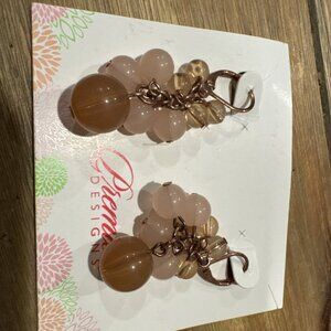 Premier Designs Light Pink Gold Cluster Bead Earrings Dangle NEW on card.