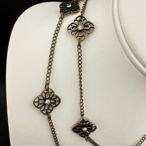 Premier Designs Long Strand Flower Necklace With Crystal Accents Brass And Gold