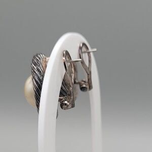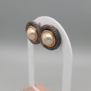 Beautiful earrings from Premier Designs, two-tone with a pearl accent.