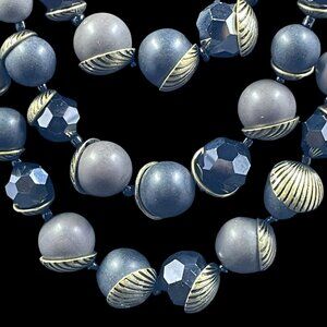Elevate your accessory game with this bold and sophisticated Premier Designs multi-strand statement necklace. Featuring three layered rows of matte and glossy beads in rich charcoal and taupe hues, this piece is accented with antique gold-tone swirl caps and faceted jet-black beads for eye-catching contrast and movement.