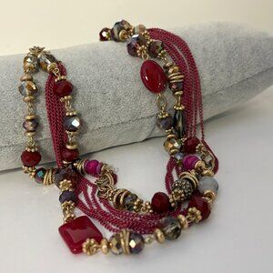 Premier Designs Multi-Strand Beaded Necklace Burgundy Purple Gold Tone Beads
